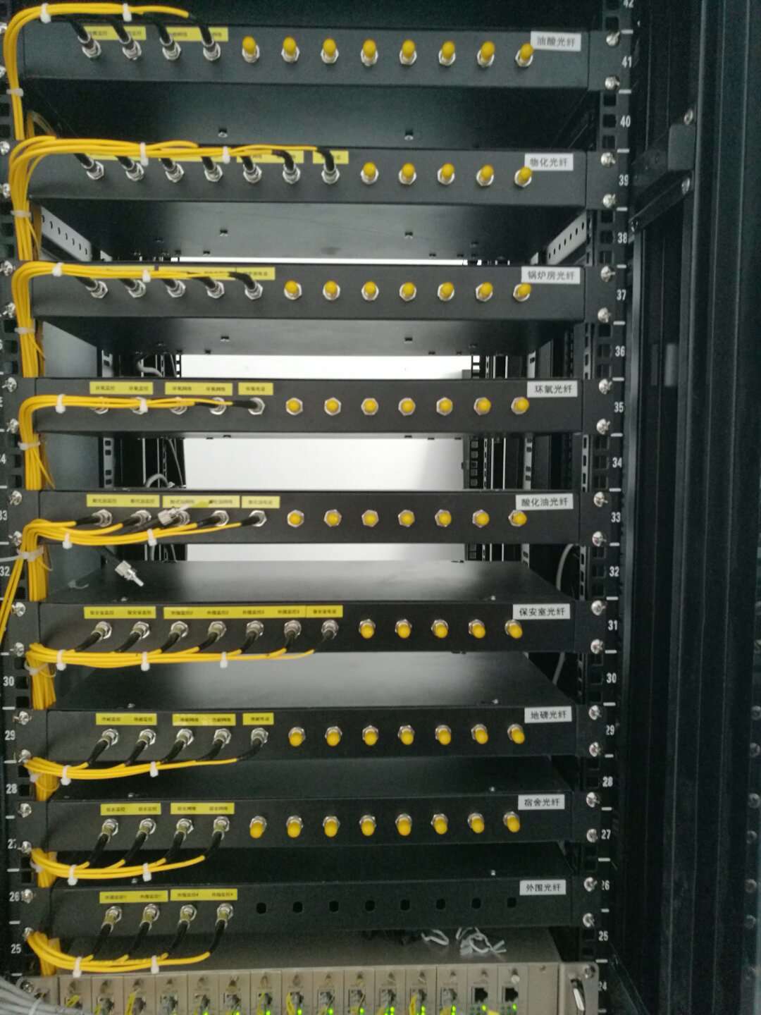 標準的19英寸機柜設備面板一般按nU規格制造,1U一般用于一臺設備。對于一些非標設備,大多數可以安裝在19英寸的機箱中,并通過額外的轉接板固定。知道每臺設備需要多少U(多少個標準單元),就可以精確設計出將設備放入機柜的方案。但是,機柜不能充滿電安裝。一般來說,由于散熱和線纜管理規定,42U的機柜安裝10-20U的設備。
