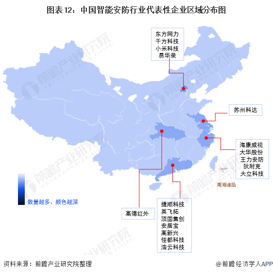 從代表性企業(yè)分布情況來看,智能安防軟硬件及系統(tǒng)集成企業(yè)主要分布于珠三角、長三角以及北京等地區(qū),運營服務商以廣東地區(qū)居多。