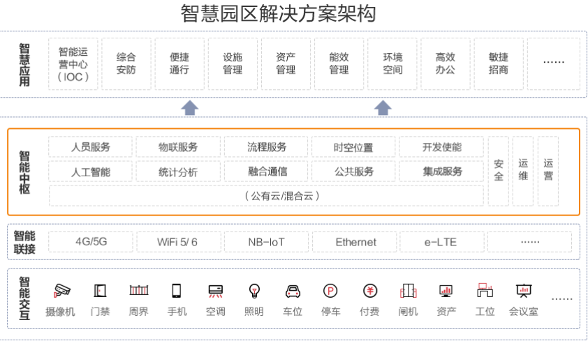 智慧園區(qū)解決方案依托華為產(chǎn)品組合,基于華為云,聯(lián)合生態(tài)伙伴,解決客戶問題。以數(shù)字平臺打造智慧園區(qū)數(shù)字底座,實(shí)現(xiàn)南向連接標(biāo)準(zhǔn)化,北向應(yīng)用服務(wù)化。
